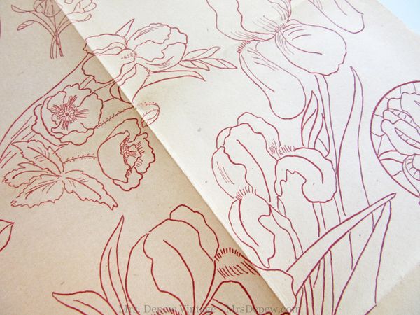 Typical 1950s designs, in which stylized floral elements are interspersed with geometric patterns.