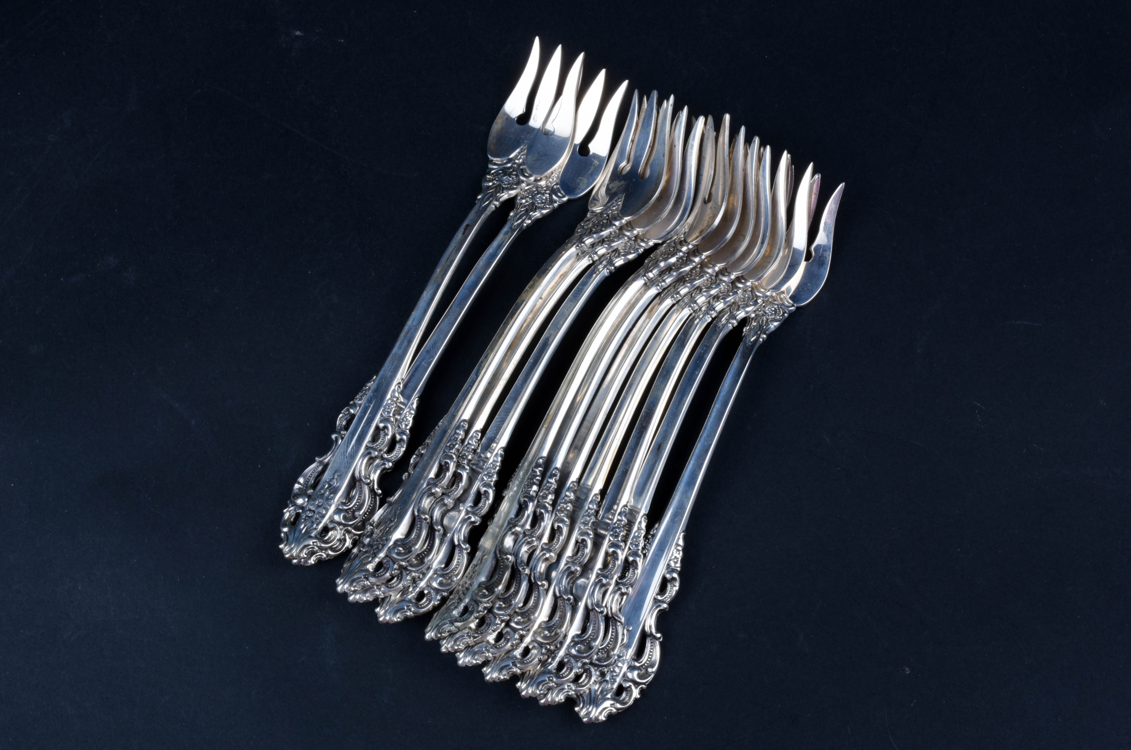 85 Piece Reed & Barton Sterling Silver Flatware Service ... from fws-shared.s3.amazonaws.com Reed & barton rebacraft l'amour floral. These timeless flatware sets become treasured heirlooms and are perfect for special occasions. Reed and barton silverplate set harlequin design olive/ cocktail forks box macys. Reed and barton sterling silver image gallery. 10 wallace silver plated floral cocktail forks seafood shrimp fortune pat 86327. Vintage sterling silver set of 8 cocktail forks decorated with marlborough pattern by reed & barton, 1906. Shop with afterpay on eligible items. Reed & barton offers a distinctive collection of fine sterling silver flatware.