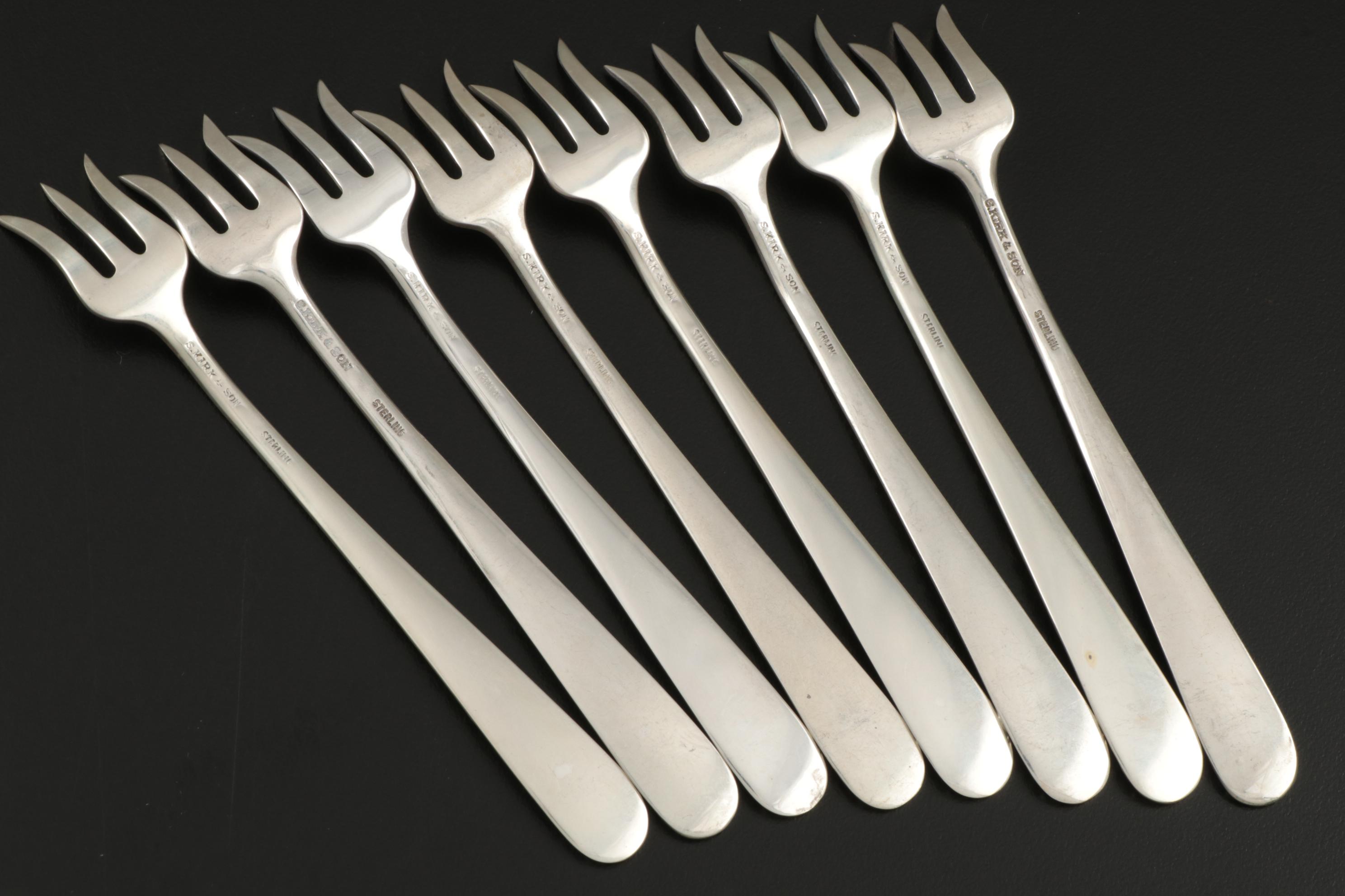 Sterling silver flatware and serving pieces.